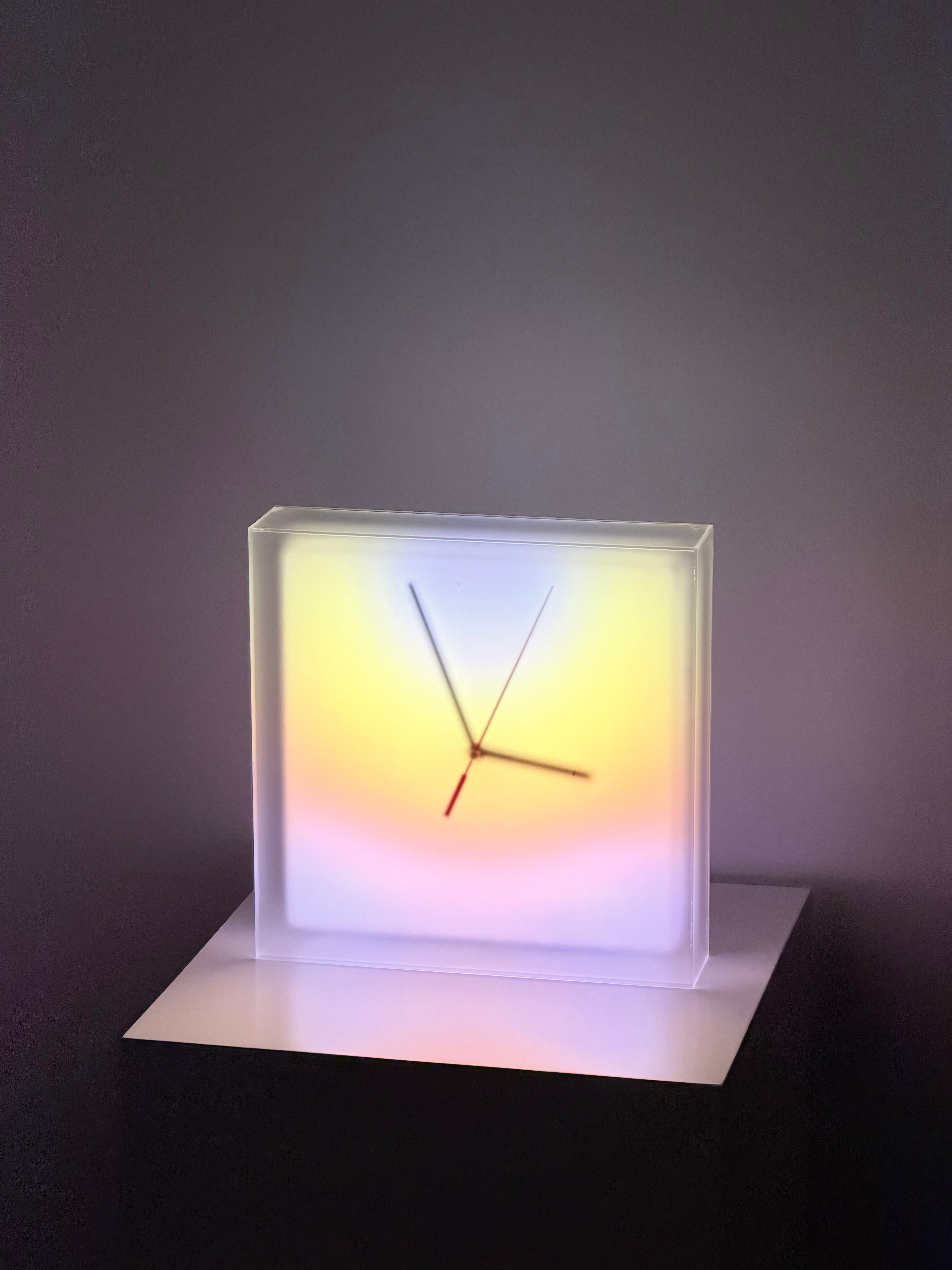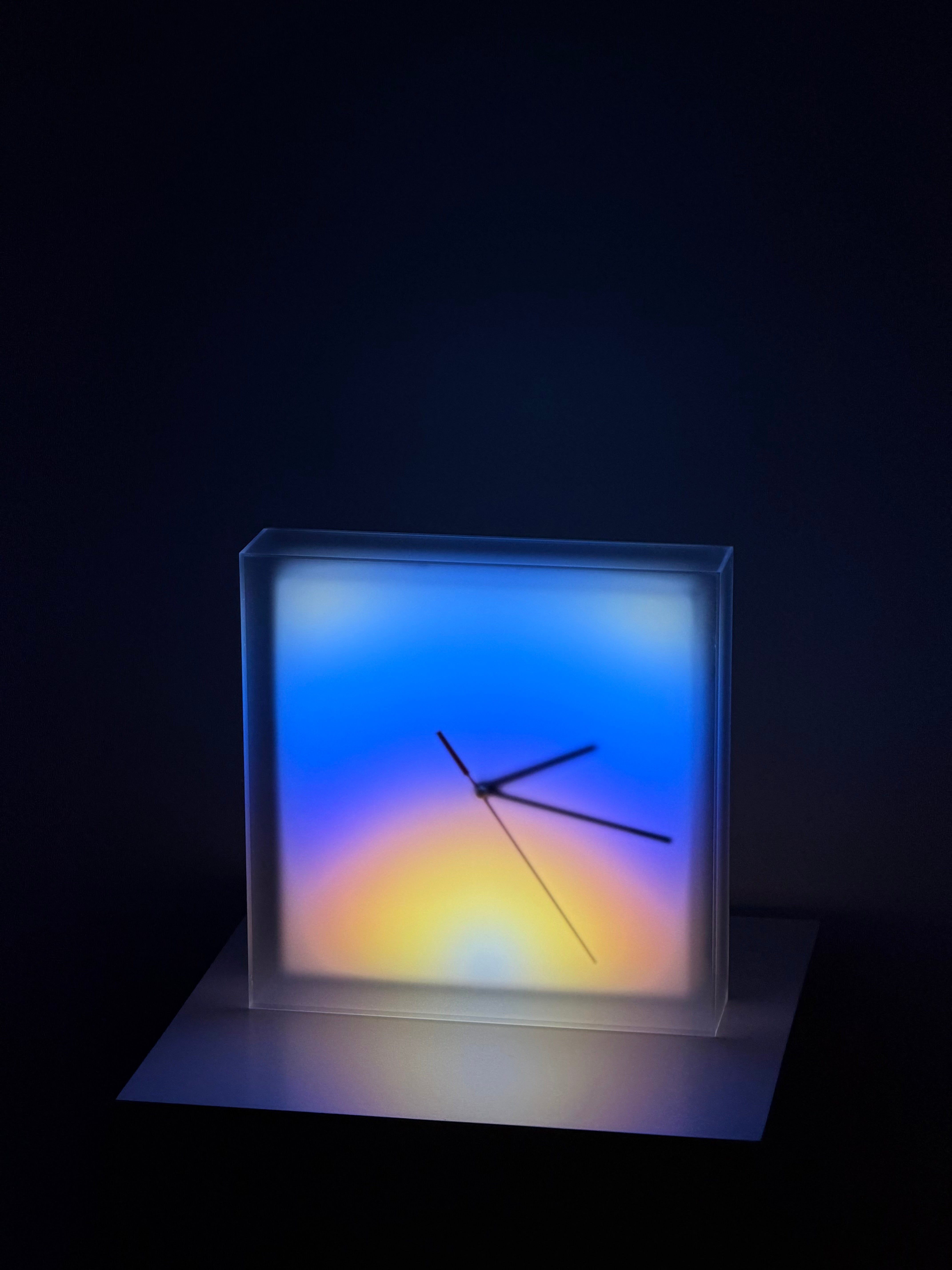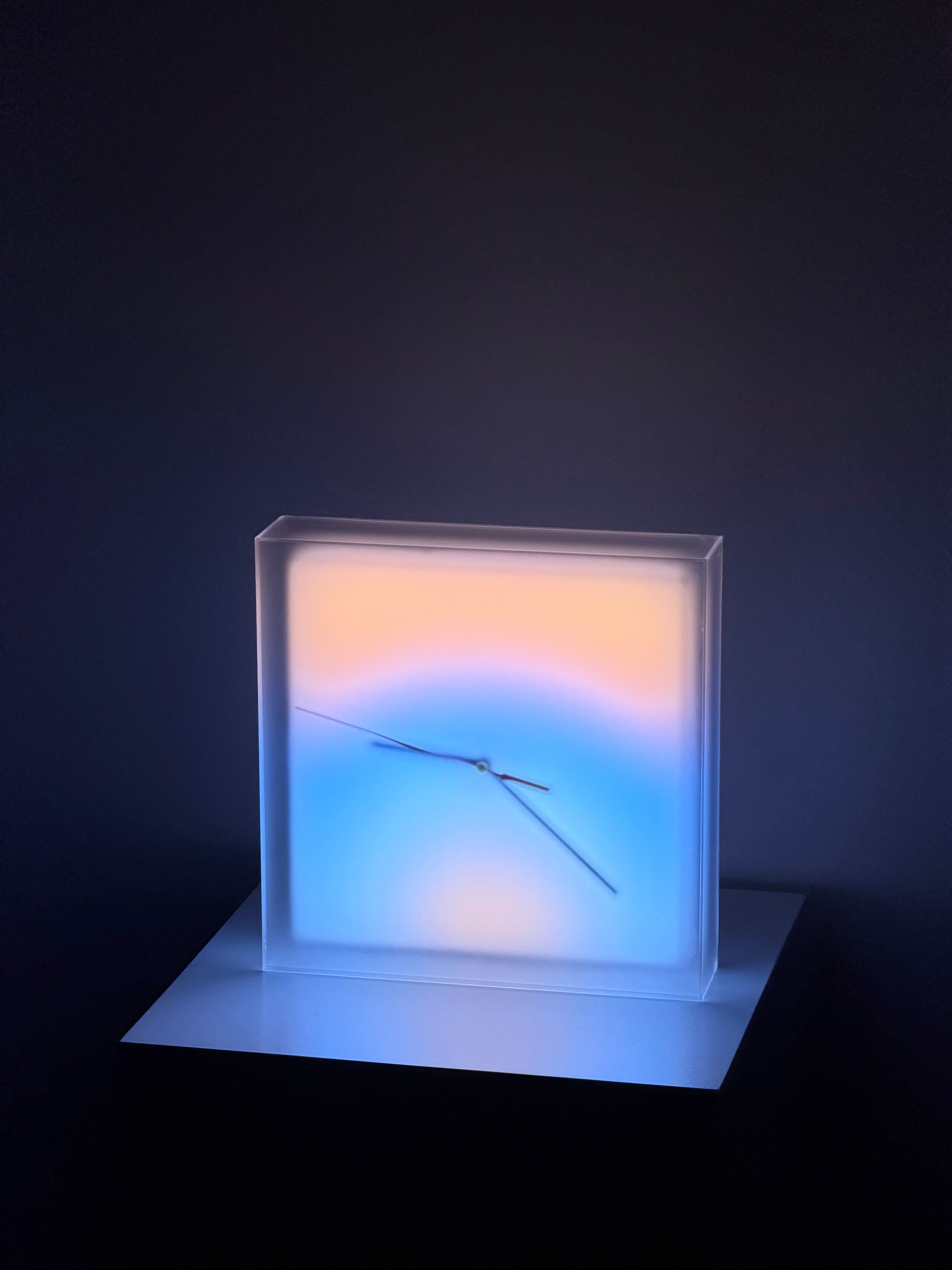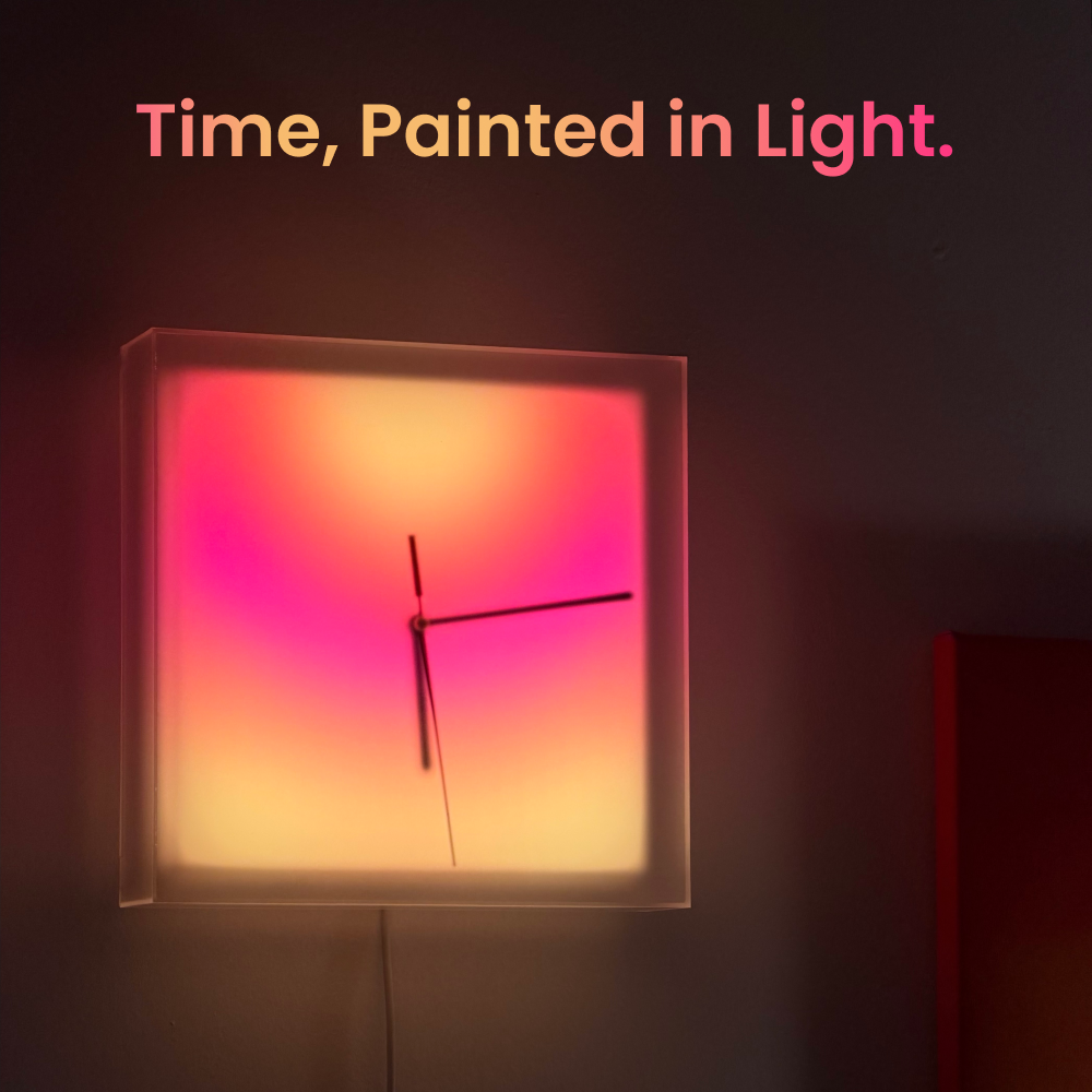 Meet the Aurora Clock—where precision mechanics meet atmospheric art. We’ve reimagined the clock not just as a tool, but as a living centerpiece for your space. By fusing a high-precision analog movement with volumetric smart lighting, the Aurora transforms the passing of time into a visual symphony. Encased in a premium frosted shell, the light appears to float inside, creating a breathless, suspended gradient effect. From deep, moody auroras to vibrant, prismatic shifts, customize the glow to define your style. It is more than a clock; it is a kinetic sculpture that redefines how you perceive time.
